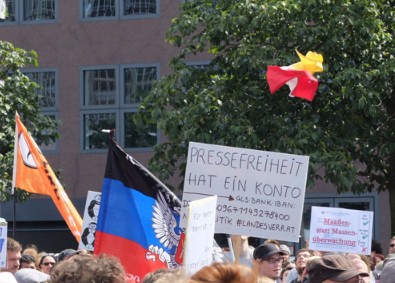 1.August 2015. So waren wir heute mal wieder demonstrieren - für den ominösen Blog "Netzpolitik.org", bzw. nein, eher gegen die Anschuldigungen, die gegen ihn vorgebracht wurden. Ich gestehe, dass ich den Blog nicht unter meinen Favoriten habe. Zu brav und zu mainstreamig. Aber die Bedrohung mit dem "Landesverrats-Paragraphen" ist mehr als lächerlich! In einem Land, in dem die Regierung NICHTS gegen die allumfassende NSA-Überwachung durch "unsere Freunde" tut. (wer solche Freunde hat.... etc...) Im Prinzip gehört die gesamte Regierung wegen Landesverrats verklagt... Dennoch, wehret den Anfängen. Grund genug, mit auf die Demo zu gehen! Die ganze Sache müffelt aber auch. Der Netzpolitik.org-Blog erfährt Unterstützung durch Politschranzen und hat Preise bekommen (Grimme Online Award und "Journalist des Jahres 2014")... Und in den Nachrichtensendungen bekommt die heutige Demo sogar umfangreiche Berichterstattung (war ich auch zu sehen? lol), was andere Demos im letzten Jahr mit mehr Teilnehmern nicht bekamen. ![]() Markus Beckedahl Kleine Bebegenheit am Rande: Eines der ersten Dinge, die Beckedahl heute von sich gab auf dem "Lex"-LKW-Podium war dann auch das Wegschicken vermeintlicher "Russischer Nazis", die da mit einer Fahne standen. Es folgte dann noch ein Hinweis darauf, dass es in Russland mit der Pressefreiheit nicht gut bestellt sei..etc.. (...vielleicht waren die ja extra deshalb hier?) Jemand anders rief dann passend: "Dann müssen die Grünen aber auch weg!" (es waren auch zwei Fahnen der Grünen zu sehen). ![]() Da fliegt die eine Russenfahne über dem Wort "Pressefreiheit" (die andere verschwand auch bald), während der Mob "Abhauen" skandierte. Ferner waren die JuLis (ach, die gibt's noch) und die Piraten (ach, die gibt's noch) und VerDi da. Hier ist übrigens ein sehr lesenswerter Artikel, der interessante Hintergründe zu dem Blog aufdeckt! http://projekt-wahrheit.de/.../netzpolitik.org_und_der_landesverrat_alles_nur_show. Auch, wenn's nur Show ist, kann man dennoch für die Freiheit der Presse demonstrieren. Also, grundsätzlich :) (Und Herrn Snowden würde ich immer noch nicht raten, in die BRD einzureisen) ![]() das fand ich witzig (ob die Kids heute überhaupt noch FJS kennen?) ![]() Auch ein sehr gelungenes Plakat MEHR FOTOS: Fotogalerie: http://www.lopy.net/demo_nporg/index.htm Netzpolitik mit Bericht und Fotos https://netzpolitik.org/2015/bericht-von-der-demo... ------------------------------------ Dr. Z. 2015 first published on Davidbowie.de, 2015 -- Back to Z_Journal |